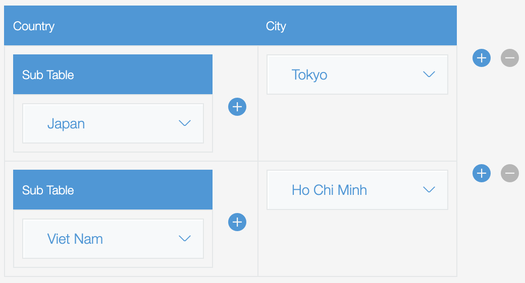 country Dropdown の値が変更されたら city Dropdown の値が変更されます。